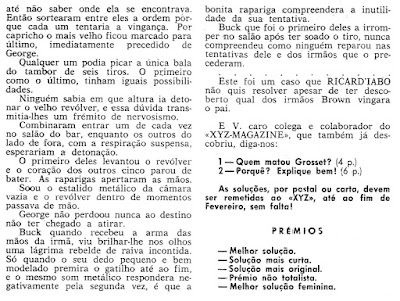 Em 19 de Outubro de 1950, na revista Mundo de Aventuras surgiu Concursos Miscelânea, que entre outros passatempos, também publicava problemas policiários.